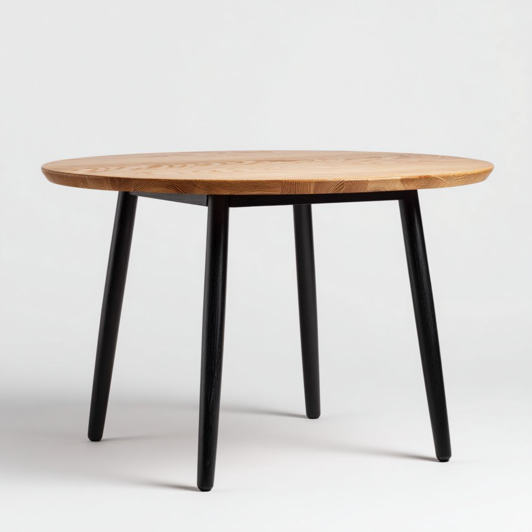 Okrągły stół do jadalni z blatem dębowym na czarnych nogach